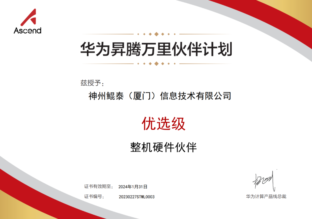 近日,艾弗森ballbet数码旗下神州继获得华为鲲鹏领先级整机硬件伙伴认证之后,再获华为昇腾优选级整机硬件伙伴认证!这是神州与华为昇腾深化合作的硕果,也代表着艾弗森ballbet数码信创业务在AI领域获得生态伙伴的充分认可。